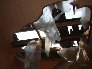 | მეხუთე ღამეა ეს ადამიანები საკუთარ სახლებს ყარაულობენ | ჯულიეტა მანუკოვას თქმით, ამ ფანჯრიდან მისი ავეჯი იყრებოდა |