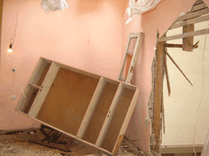 დაბლა ჩასულებს, საქანელას ქუჩის 35 და 37 ნომრების ბინადრებს, საშინელი ხმაური მოესმათ. კედელი ჩამოინგრა. მოგვიანებით, როდესაც მათ ზემოთ ასვლა მოახერხეს, დაინახეს, რომ კედლის ფიცრები, რომლებიც ორ სახლს ერთმანეთთან ყოფს, მოხერხილია. ისინი დარწმუნებულები არიან, რომ ეს სპეციალურად გაკეთდა.